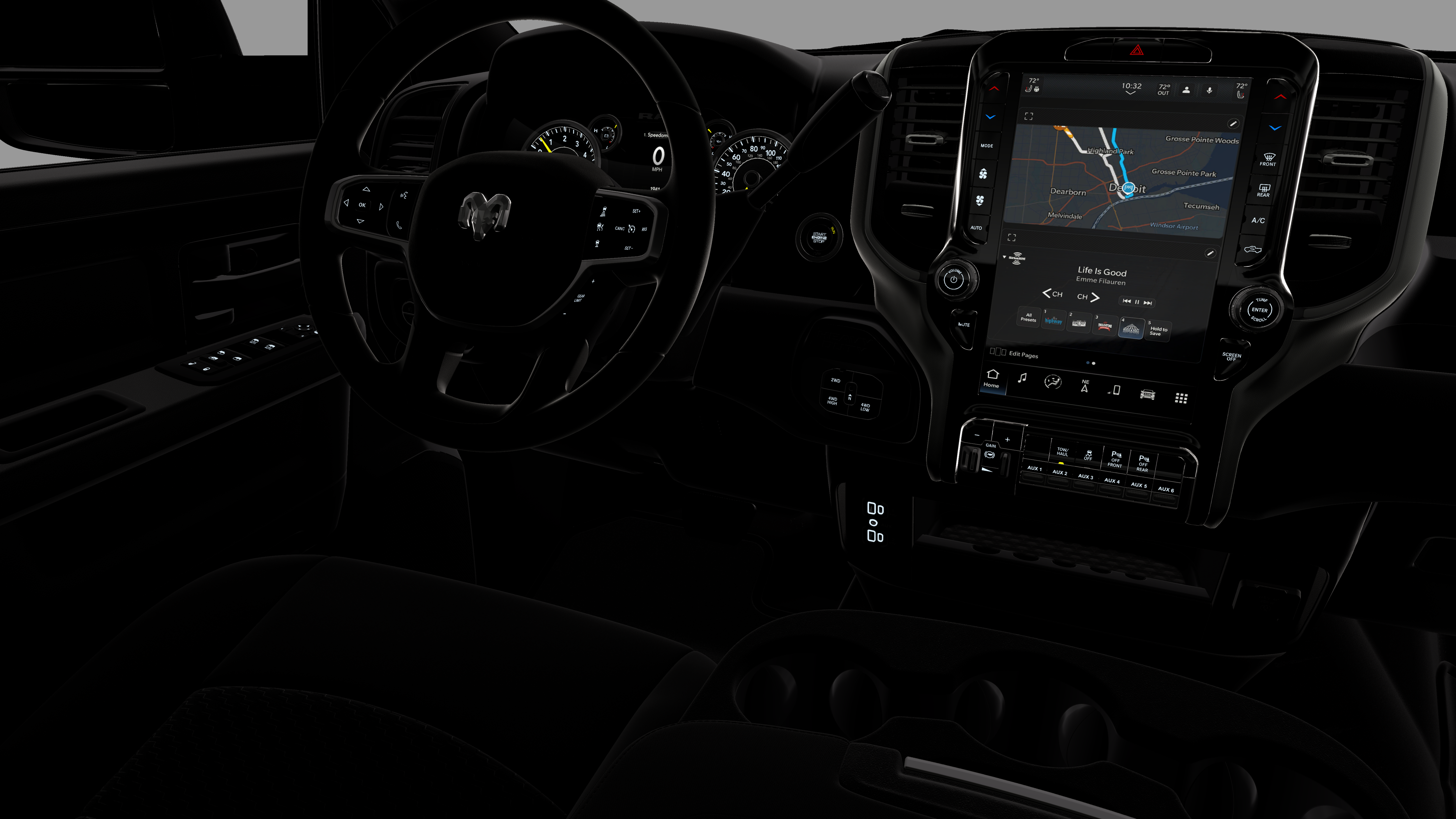 - Radio w/Seek-Scan, Clock, Speed Compensated Volume Control, Aux Audio Input Jack, Voice Activation, Radio Data System and Uconnect External Memory Control
